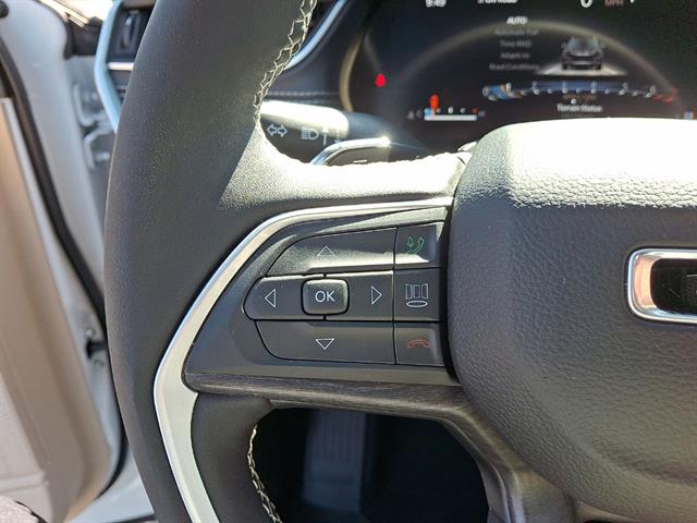Experience luxury and capability with this 2025 Jeep Grand Cherokee Limited 4x4 SUV in classic white. Offering refined comfort and top-tier technology, this Grand Cherokee features Capri leatherette seats, heated front and rear seats, a heated steering wheel, and a power-operated rear liftgate for convenience. Stay connected with the Uconnect infotainment system, 10.1" touchscreen, wireless Apple CarPlay and Android Auto, built-in navigation, and a Wi-Fi hotspot. Drive confidently with advanced safety including front and rear automatic emergency braking, lane keeping assist, blind spot monitoring, rear cross traffic alert, adaptive cruise control, and a rearview camera system. Enjoy a quiet ride thanks to acoustic laminated glass and premium sound insulation. With its powerful Pentastar 3.6L V6 engine, 8-speed automatic transmission, and full-time 4WD, this Grand Cherokee is ready for any journey. Premium features like remote engine start, proximity entry, and customizable digital instrument cluster enhance every drive. Discover the perfect blend of rugged performance and modern luxury today.